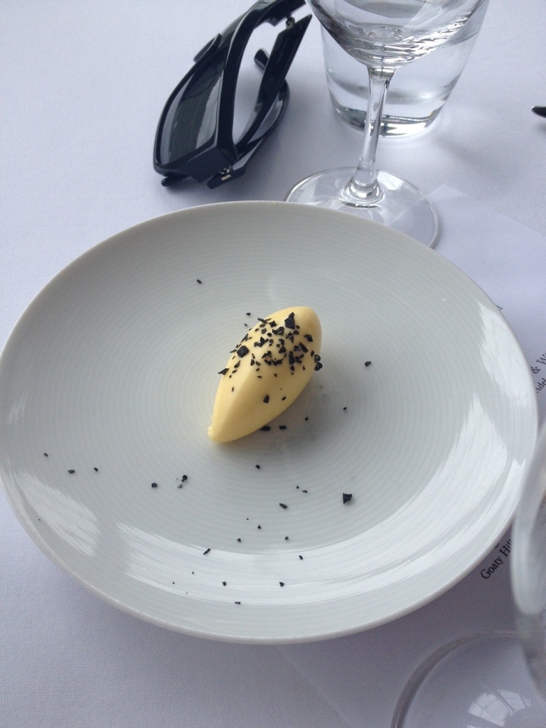 Dessert was called ‘Tropicana’ and was a mixture of different techniques. It was nice and pretty. I forgot to take a photo of it, so here is a picture of the house churned butter (great current fad!) with volcanic salt, which I preferred to the dessert anyway. Fat bastard!