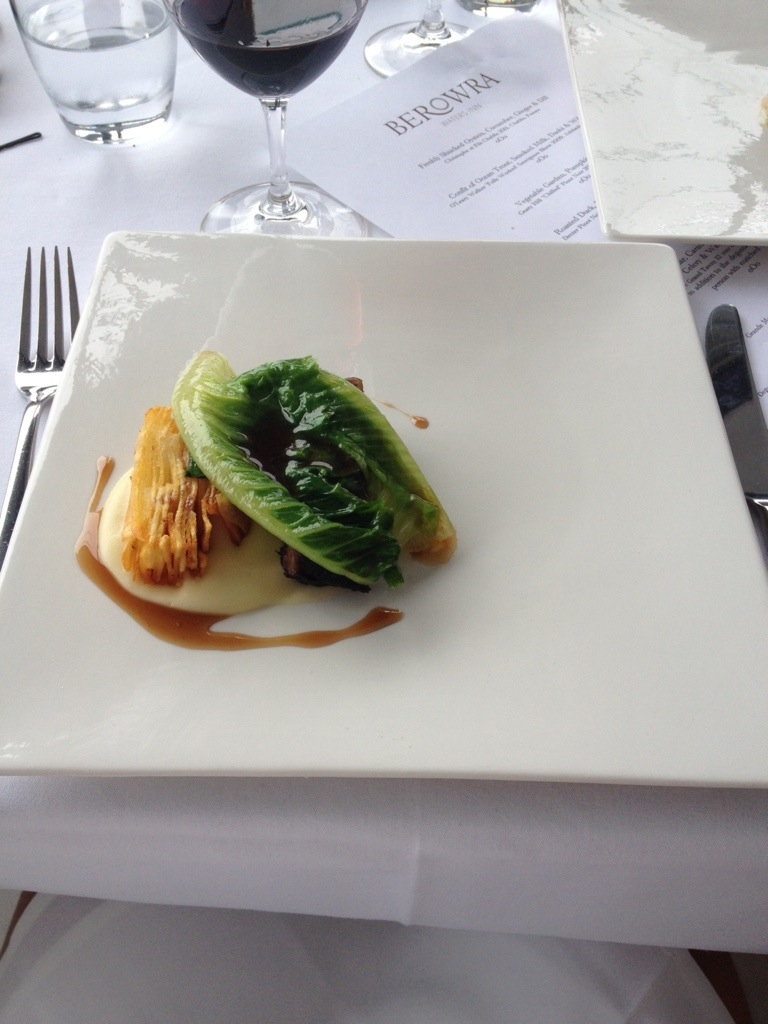 This was the best dish. Slow cooked beef rib (40hrs @ 69C apparently) with potato terrine, truffle mash and cos. The beef was soft and unctuous; the terrine was crispy; and the truffle mash was unbelievable. It could have done without the cos.